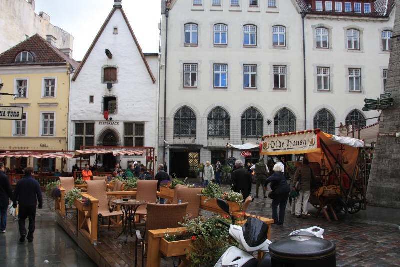 Ook hier is alles middeleeuws, met om de hoek de ultieme exponent van Tallinns retro-imago: themarestaurant Olde Hansa. Dat klinkt als foute kitsch, maar Olde Hansa heeft het goed voor elkaar als toeristische trekpleister. Eten in het schemerdonker in een authentiek koopmanspand aan lange, met kaarsvet doordrenkte houten tafels op pluizige dierenvellen. Ook de kaart is enigszins afwijkend van de andere toeristenmenu's in de oude stad: samengesteld door historici in samenwerking met de chef-kok. En alle tafels zijn bezet.