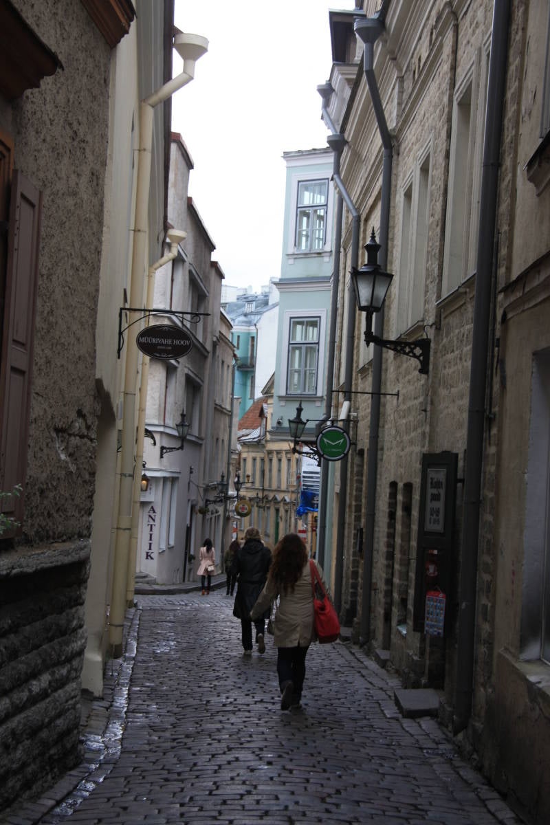 Een mobiele telefoon brengt je terug in de realiteit: het 'getrappel' blijkt niet van paarden te zijn, maar van de hedendaagse Este dames die op hoge hakken de kinderkopjes trotseren.
