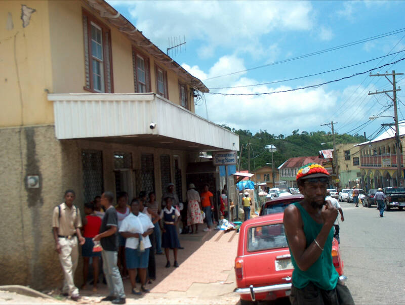 Het havenplaatsje bezit enkele historische bouwwerken, zoals het negentiende eeuse Courthouse met een opmerkelijke klokketoren. De klok was oorspronkelijk bedoeld voor het eiland st Lucia, maar werd per ongeluk hier bezorgd. Het stadsbestuur had bij de Engelse firma een eenvoudiger klok besteld en deze bestellingen werden verwisseld. Toen de bevolking de mooiere klok zag die bedoeld was voor het andere eiland, wilden ze hem niet meer kwijt. De extra kosten werden gezamenlijk gedragen en een Duitse inwoner besloot om de klokkentoren te betalen. Met als voorwaarde dat hij het ontwerp mocht bepalen. Het resultaat is een klokketoren in de vorm van een Duitse helm. In de nauwe straatjes rond het plein staan meerdere Georgiaanse woningen en huizen met Westindische gingerbread versieringen.
