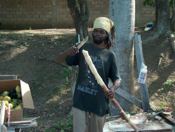 Als we Negril in zuidelijke richting verlaten, zijn er nog resten te zien van het Great Morass. Aansluitend daarop liggen uitgestrekte suikerrietplantages en kleine dorpjes waar de mensen in hun levensonderhoud voorzien met de suikerrietoogst en verdere opbrengsten van het land. Een derde van de landbouwgrond van het hele eiland wordt gebruikt voor de suikerrietteelt. Hoewel de landbouw niet meer de toonaangevende inkomstenbron van het eiland is, zijn er in deze sector nog steeds de meeste mensen werkzaam. Belangrijke exportartikelen zijn naast suikerriet bananen, citrusvruchten, koffie, cacao, kokosnoten en kruiden als piment. Hier in de kleine dorpen op de boerderijtjes worden producten voor eigen gebruik verbouwd, zoals yammen, zoete aardappelen en diverse soorten bonen en uien. Tussen de mais, bonen en uien ontdekken we her en der ook wat wietplanten. We zien ook veel mango's, cacaobomen, cashewbomen en ackee. Voor het eerst in mijn leven zie ik pinda's op het land liggen die net geoogst zijn. Ook nog ongebrand smaken ze prima.