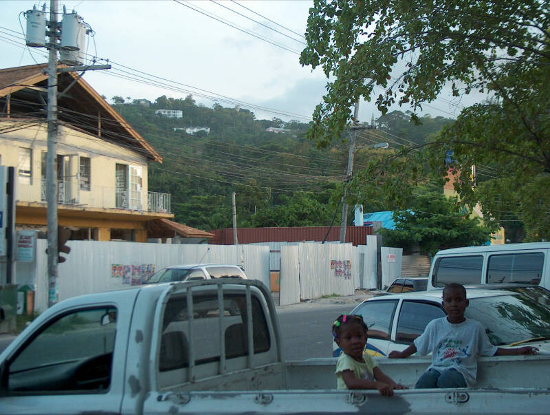 Op zondag gaan we met de routetaxi naar Lucea. De taxirit is een ervaring op zich, als de auto echt helemaal vol zit, stopt de chauffeur onderweg om nog een passagier op te pikken. Deze wurmt zich op de achterbank bij de toch al opgepropte medereizigers. De deur kan bijna niet meer dicht, maar daar weet de chauffeur wel raad op. Nog ff duwen, proppen en opschuiven en we scheuren weer verder als sardientjes in een blikje. Ik heb de beste plaats in de auto gekregen; voorin. Althans volgens de chauffeur. Ik weet het nog zo net niet, zie het gevaar steeds recht op me afkomen. Inhalende auto's bijvoorbeeld, waarvan je zeker weet dat ze niet op tijd op hun eigen rijbaan terug kunnen zijn. Gelukkig halen ze het iedere keer net wel. Net. Alhoewel; hoezo eigen rijbaan? De gemiddelde Jamaicaan heeft niet zoveel met rijbanen of eigen weggedeeltes. Je rijdt gewoon daar waar je auto nog tussen past. Iets wat op een systeem lijkt heb ik niet kunnen ontdekken. Ieder vrij plekje wordt benut, met een zo hoog mogelijke snelheid. Alles gaat sloom en relaxt in Jamaica, maar niet het autorijden. Gelukkig is het niet zo ver naar Luzy, zoals het plaatsje met zo'n 6000 inwoners gewoonlijk wordt genoemd.