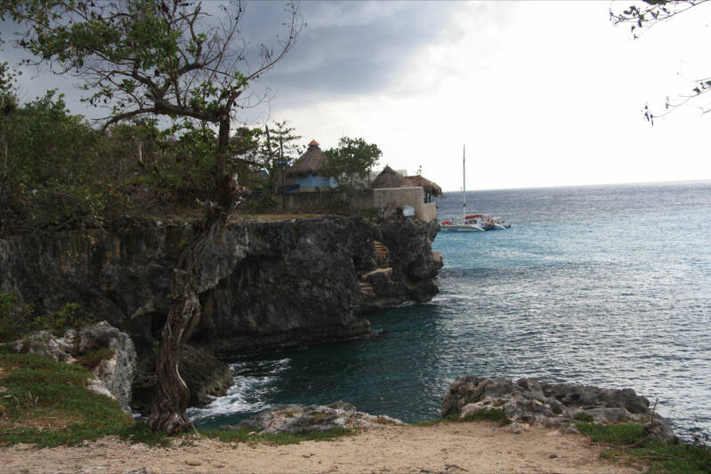 Elke namiddag trekken drommen toeristen naar Rick's Cafe om de zonsondergang te bekijken. Het schijnt één van de meest bekende en drukst bezochte cafe's ter wereld te zijn. Ons hotel is hier niet ver vandaan en een aardige wandeling, helaas vooral langs de drukke weg. De parkeerplaats en de berm van de weg staan vol met touringcars, taxi's en toeristenbusjes. Aan de andere kant komen de catamarans met feestende excursiegangers aanvaren. Om het volk te vermaken zijn hoog in de bomen plateau's aangebracht waar lokale waaghalzen zich vanaf storten in het water. Niks is te gek voor de toeristendollars. Onvoorstelbaar grote toeristenkermis voor een café-restaurant op een mooi plekje dat vooral leuk is voor de cafébaas, maar afgezien van een ongeloofelijk knap staaltje marketing is het verder niets bijzonders.